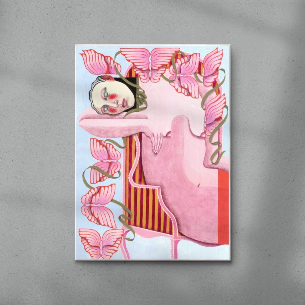 Carla Petelski is a Brussels based artist. She creates structured botanical compositions. expressing herself through a vivid color palette inspired by both fauna and flora. She blends human emotion with abstract representations of the natural world. Carla enjoys experimenting with patterns and combining pencil textures with paint. all while remaining rooted in her illustrative style.