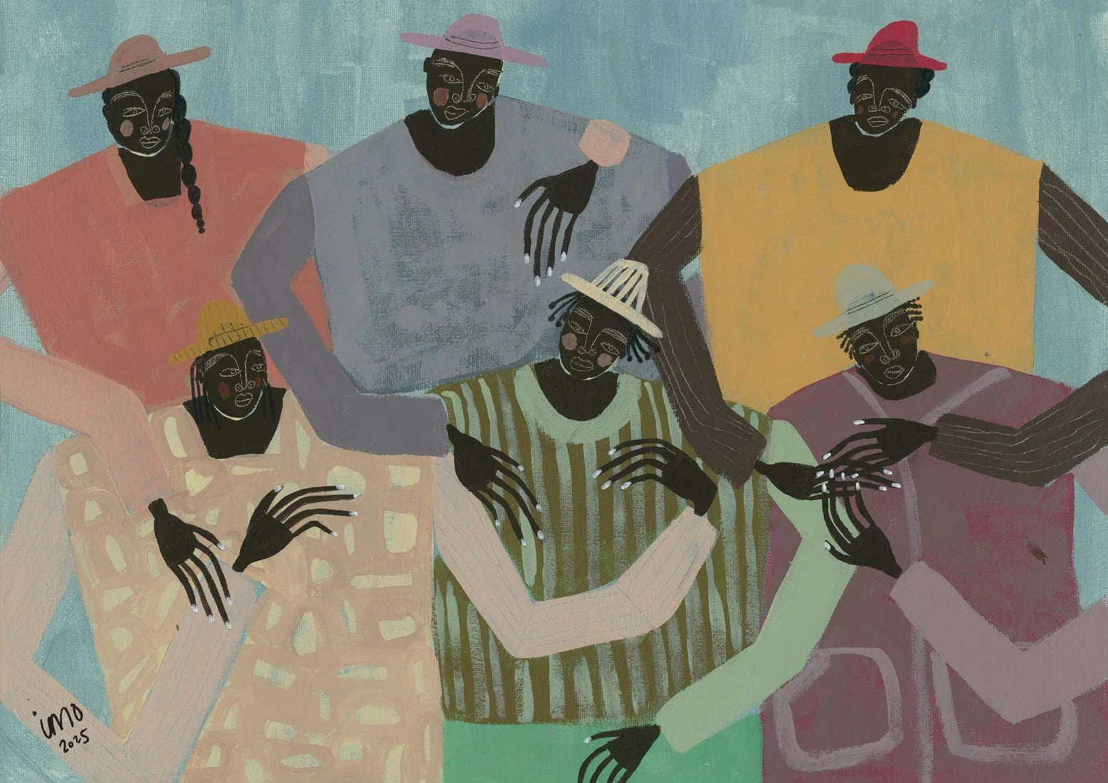 Ibi Meier-Oruitemeka/Studio IMO is an artist and mother who began painting for the first time in May 2024. Ibi immediately felt a deep affinity with acrylics paints as a tool of soulful self expression. Drawing inspiration from her British Nigerian identity. often exploring themes related to human connection and solitude. These themes are playfully communicated through her abstract figurative paintings..