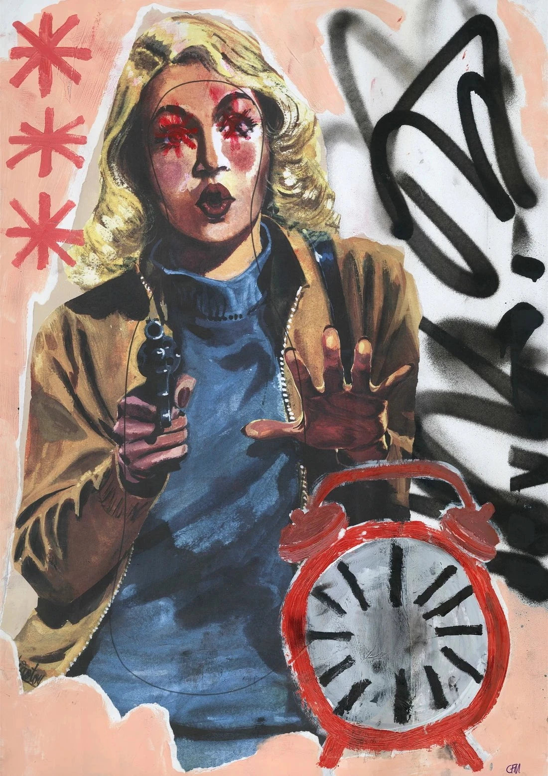 Caitlin Flood-Molyneux is a contemporary Welsh Artist based in South Wales. Their artistic practice investigates the relationship between pop culture imagery and the way in which we attach emotion and memory to images using mixed media techniques to express subjective experiences of hardship. Flood-Molyneux has exhibited widely across the UK and internationally and has recently shown work at Christie’s and Sotheby’s Auction House in London. In 2024 they were shortlisted for the prestigious Forbes 30 and was a delegate at the conference in Botswana. Flood-Molyneux’s work is both deeply personal and universal. as it charts key moments of their life; a private and enigmatic visual story with which Flood-Molyneux invites the viewer to forge their own connection.