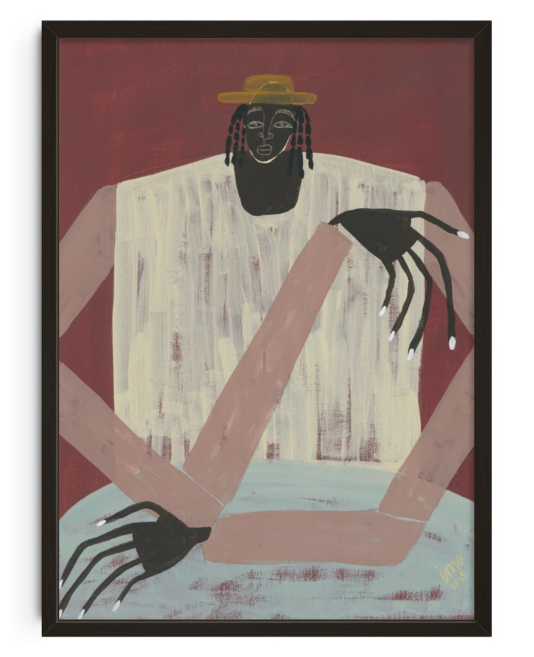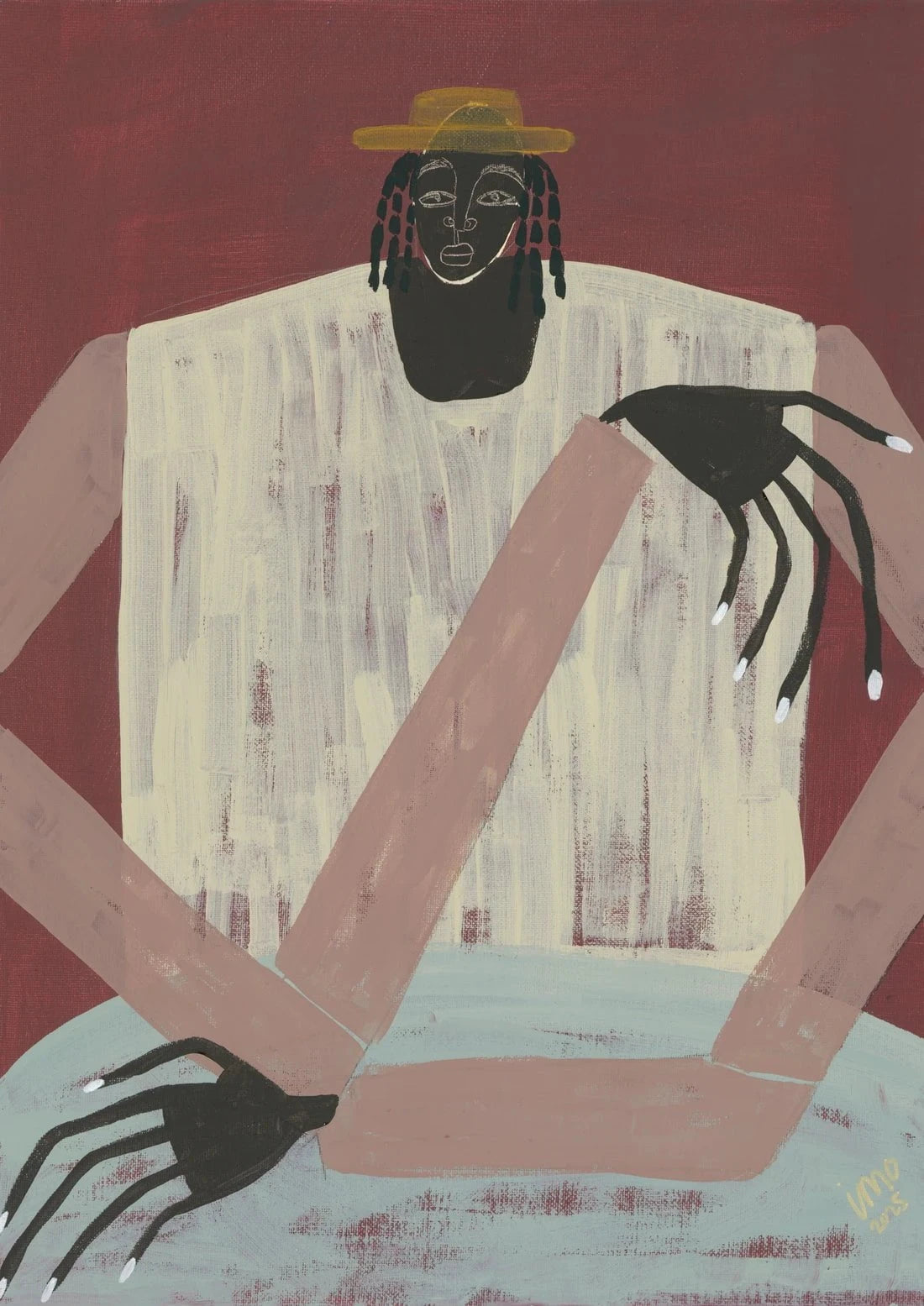 Ibi Meier-Oruitemeka/Studio IMO is an artist and mother who began painting for the first time in May 2024. Ibi immediately felt a deep affinity with acrylics paints as a tool of soulful self expression. Drawing inspiration from her British Nigerian identity. often exploring themes related to human connection and solitude. These themes are playfully communicated through her abstract figurative paintings..